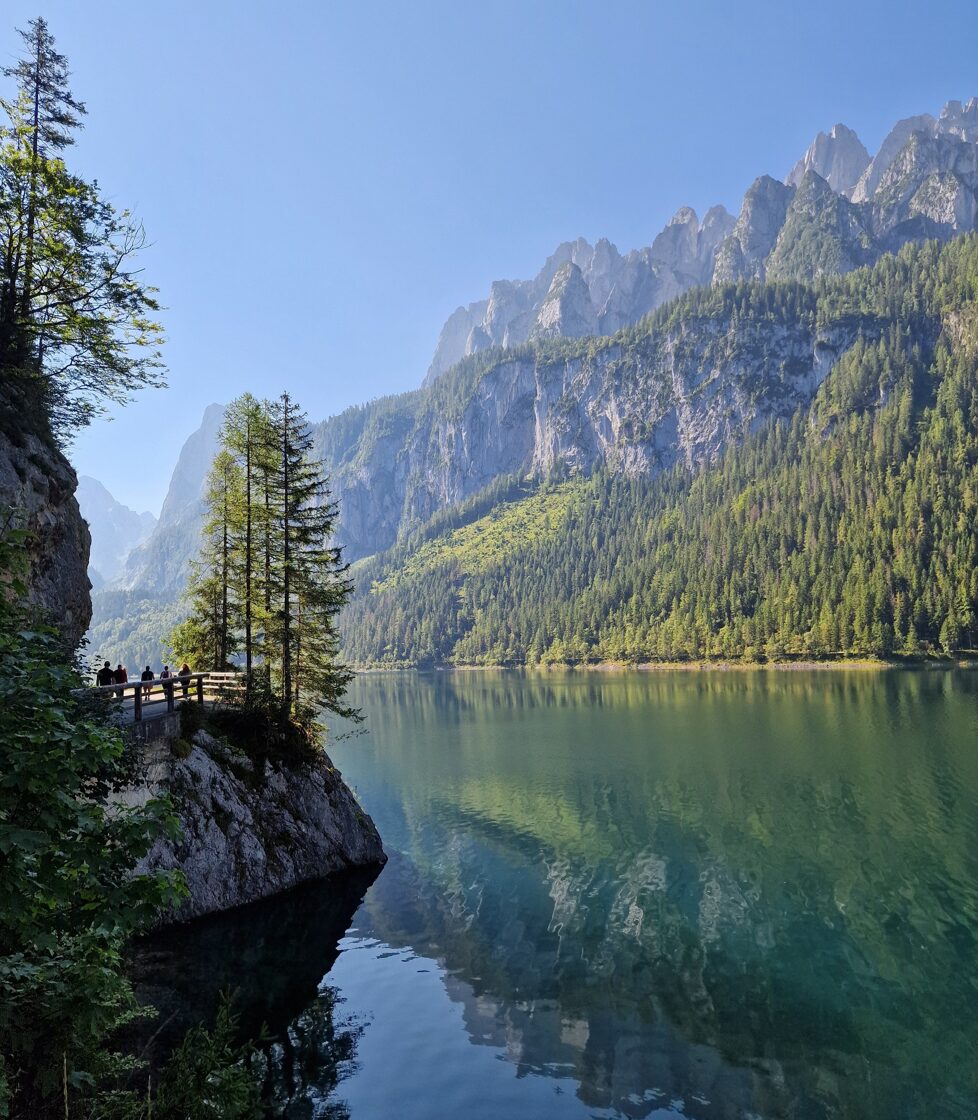 nuostabiais vaizdais, lengvu žingsneliu ėjome takeliu palei Gosausee ežerą ir