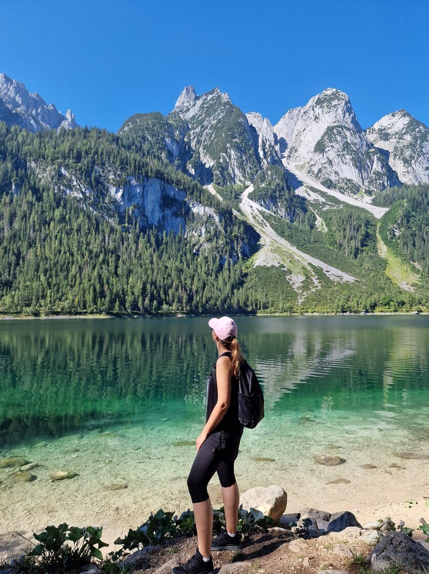 nuostabiais vaizdais, lengvu žingsneliu ėjome takeliu palei Gosausee ežerą ir